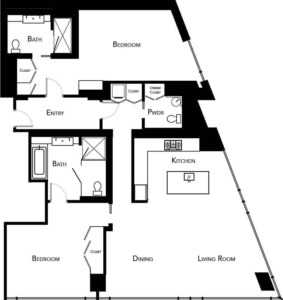 In addition to unparalleled, helicopter views of New York City, best-in-class amenities, and distinctive service, our 2 bedroom unit has a fully furnished kitchen. The living area has stunning views of the city with spacious seating and dining areas. This 1750 square foot penthouse consists of 2 suites. The junior suite has double beds and a connected bathroom. The master opens up to the kitchen, living space, King bedroom, and connected bathroom.